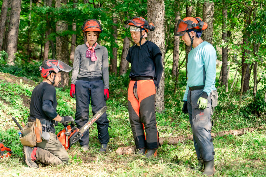 伊那の森で働きたい人向けのコース。実際に木を伐るだけではなく、多角的な視点から森に価値を付ける方法や、森で働くための実践的なノウハウを学べる、他の林業研修にはない視点を持った森で働く学び舎。