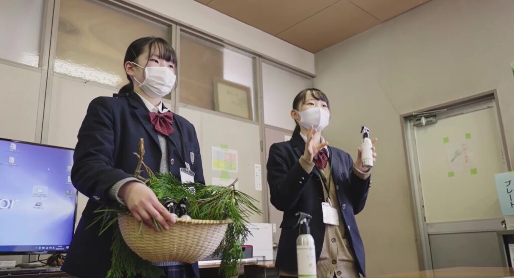 ルームスプレーの素材は、校内の森にある約200種の樹木から香りや成分分析をし、レモンのような爽やかな香りがするネズコと、甘い香りのコウヤマキをセレクト。「とても爽やかな香りで森のなかにいるような感じがする」と、生徒たちは話します。