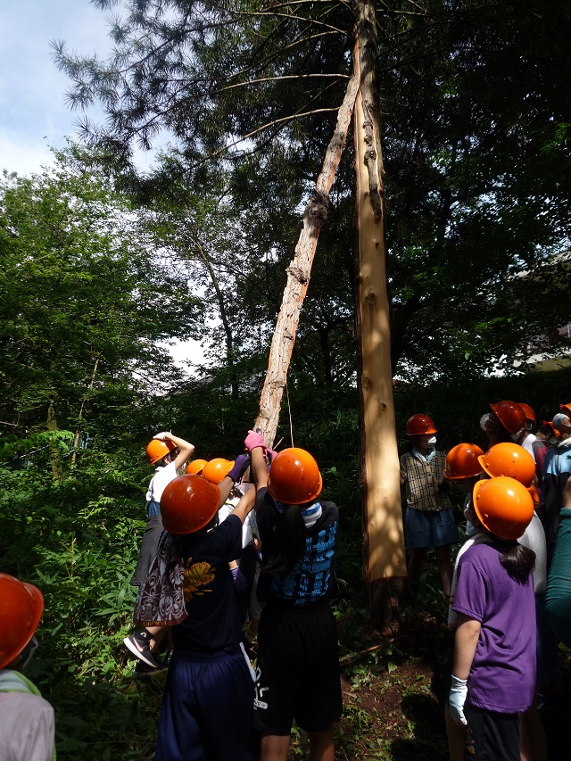 「地域と共に守る学校林で森の授業を行う」