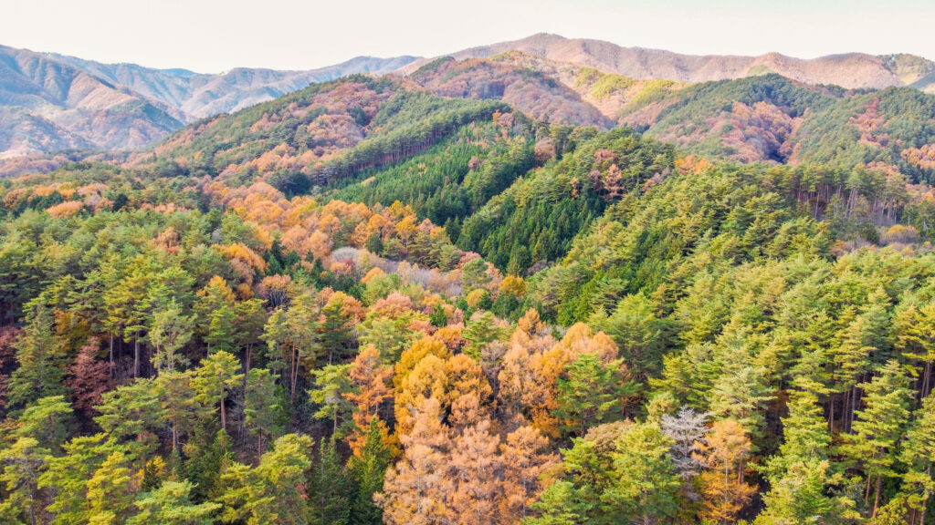 舞台は、伊那谷フォレストカレッジが拠点を置く伊那市の市有林のひとつ。中央アルプス前衛の権現山の裾野あたりに広がる森です。