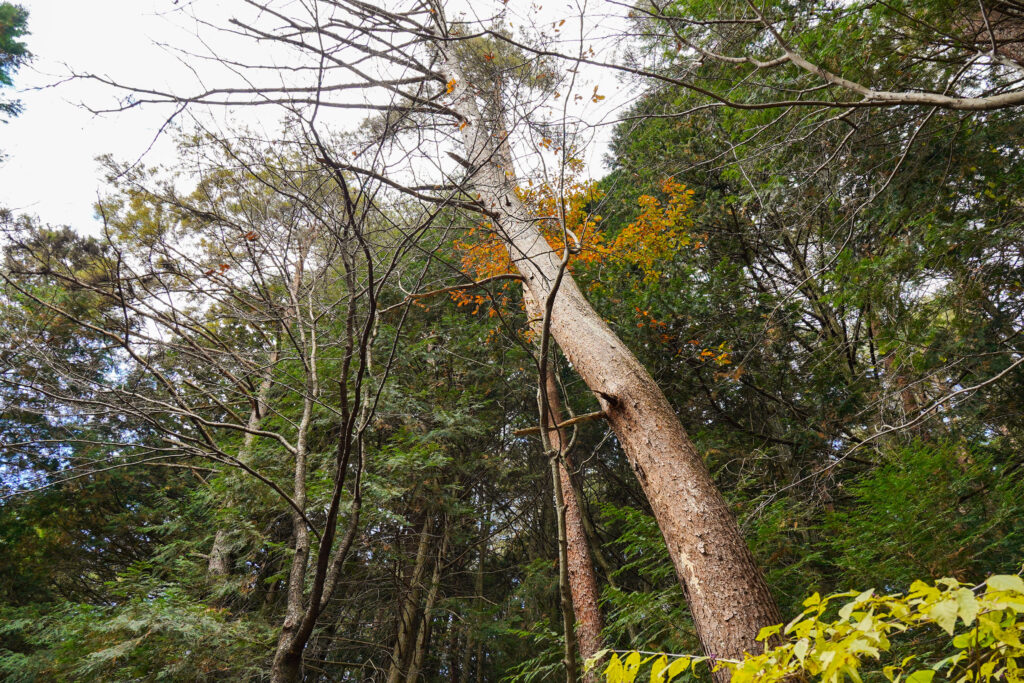 北原:僕は普段伊那谷で仕事をしているので、見慣れた景色ではあるのですが。中でも広葉樹が多いなと思いました。だいたい伊那はアカマツ、カラマツが多いのですが、こんなに大きい広葉樹は一緒に混在していないんですよね。せっかく大きい広葉樹があるなら、それは残して、松枯れが始まってきているので、アカマツは伐ったほうがいい気はするのですが、ただ伐って売っても面白くない。何かいい使い方のアイデアを出して工夫できればなと思いますね。