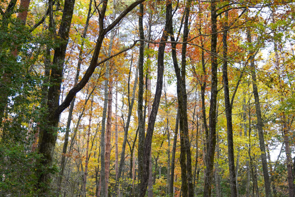 所有者から購入し市有林になりましたが、ほぼ中央部にだけ私有林の場所があります。こちらは所有者が亡くなり、相続人がたくさんいて追いきれなかったことから、購入できなかった状態で残されているそう。森の一番上には官行造林もあります(官行造林とは、国が公有地または私有地に造林をした分収林)。